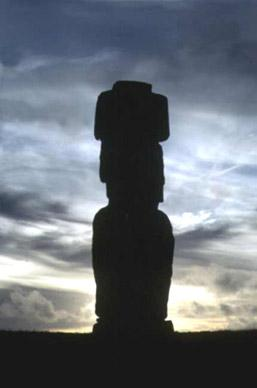Відомі всім гігантські статуї були поставлені на кам'яні платформи в Середній період, який був, приблизно, з 1100 по 1680 роки. Очевидно, творці Середнього періоду з'явилися на острові після деякої перерви, коли острів був, у всякому випадку, частково, залишений людьми Раннього періоду. Люди Середнього періоду встановлювали на аху, обличям до острова, спиною до моря цілі шеренги гігантських скульпур. Всі вони однотипні: висічені з жовтувато-сірого туфу, з витягнутими мочками вух, клиноподібним підборіддям (можливо, так зображували бороду), з продовгуватим обличчям та тулубом. Хоча, при більш уважному вивченні, дослідникам відкривались і відмінності: статуї мають різні вирази обличя, довжину вух (не всі вони дійсно довговухі). Існують і більш принципові відмінності. Деякі статуї прикрашали висічені з червонуватого тифу циліндри пукао, що значило "кучма волосся". Зустрічаються також статуї з загостреними, а не плоскими закінченнями, які стоять вкопані в землю. Пізній період — це доба культурного занепаду та міжусобних війн. Самі пасхальці називають цей час Хурі-моаі, що значить, час "повалення статуй". Тягнулося таке аж до 1868 року, коли останнього пасхальця навернули в християнство. Війни на острові відбувалися і в історичні часи. Саме це призвело до вигнання перших місіонерів з острову. Немалої шкоди острову завдали і пізніші часи, після "знайомства" з різними гранями європейської цивілізації: деякими матеріальними благами та епідеміями оспи, з відчайдушністю місіонерів "нашої доби" та жадібністю работоргівців, з дослідниками-кладошукачами та комерсантами. ЛЕГЕНДИ ТА ПЕРЕКАЗИ