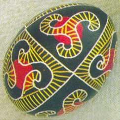 Цим знаком на писанках позначається вогонь. Вважається, що триріг пов’язаний з неолітичним богом землі (кам’яного віку), одним із атрибутів якого був вогонь. Це також символ родючості, оскільки Бог землі втілював чоловіче запліднююче начало. Триріг складається із трьох заокруглених або ламаних гачків, що виходять із загального центру, кола або трикутника, які могли бути у формі баранячих рогів, листків тощо. Він уособлює число 3 — символ триєдиного божества, порядку і гармонії.