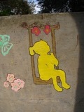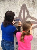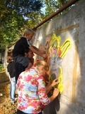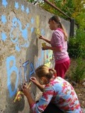 Діти настільки захопилися творчим процесом, що подекуди проявляли і власну ініціативу. Забувши про трафарети, почали малювати сердечка, квіти, зірочки... За якийсь час но дній з огорож з’явився напис: «Вітаю Вас зі святом!». «З яким святом?» - запитували ми юного художника Віталіка. На що той відповів: мовляв, коли буде свято, нехай кожному буде приємно, що і його привітали!