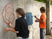 Русява дівчинка, тримаючи в руках пензлика, нетерпляче запитує: «А коли почнемо малювати?». Цікавість і натхнення настільки переповнює її, що здається, ніби за мить розпочнеться якесь неймовірне дійство. А поряд – понад десяток таких же допитливих маленьких художників. Вони зібралися, щоб разом із волонтерами «Нового Акрополя» розмалювати сірий паркан різнобарвними малюнками.