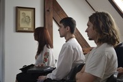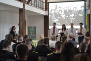 За 10 хвилин до початку ми, в очікуванні студентів університету безпеки життєдіяльності, вже подумували – а може не прийдуть... Кому ж це цікаво поети середини ХХ ст., літературні вечори і таке інше. Але вони не підвели, обіцяли прийти, прийшли! Вже за 5 хвилин до початку молоді хлопці та дівчата в красивих формах зайняли свої місця у найбільшому актовому залі УКУ (корпус на Свєнціцького, 17). Аж гордість бере, коли бачиш таку молодь.