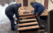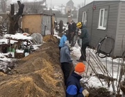 There is a permanent team of volunteers working on several building objects. In Olga's house, the pump was installed, now the sewage system is working, installed the fence around the entire perimeter. In Anna's house a septic tank was dug, a drainage pipe was laid to the river. A solid fuel boiler was purchased and delivered to the house in Mostyshche village, and the floor was poured for its installation. The water supply was finished to Valentina's house, additionally the boiler was procured and installed, the volunteers painted walls with a special varnish and insulated the doors.