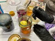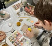 Говорили про традицію писанкарства, символізм візерунків, робили кольорові писанки за допомогою воску і писачка. Скільки століть цій традиції, і щоразу, як збираються разом писанкарі, це створює особливо затишну атмосферу великодніх свят.